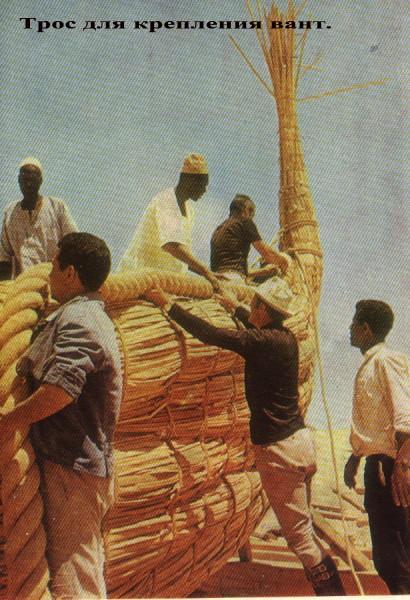 веревочные петли руками, зубами и ногами. Они строили лодку, папирусную