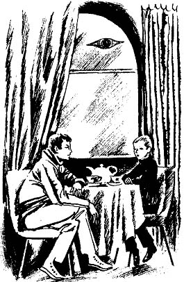 Я говорил это, болтая под столом ногами, и вдруг увидел, что по