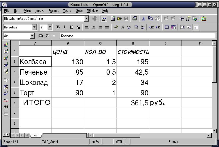Лекция 5. OpenCalc -- свободный редактор электронных таблиц